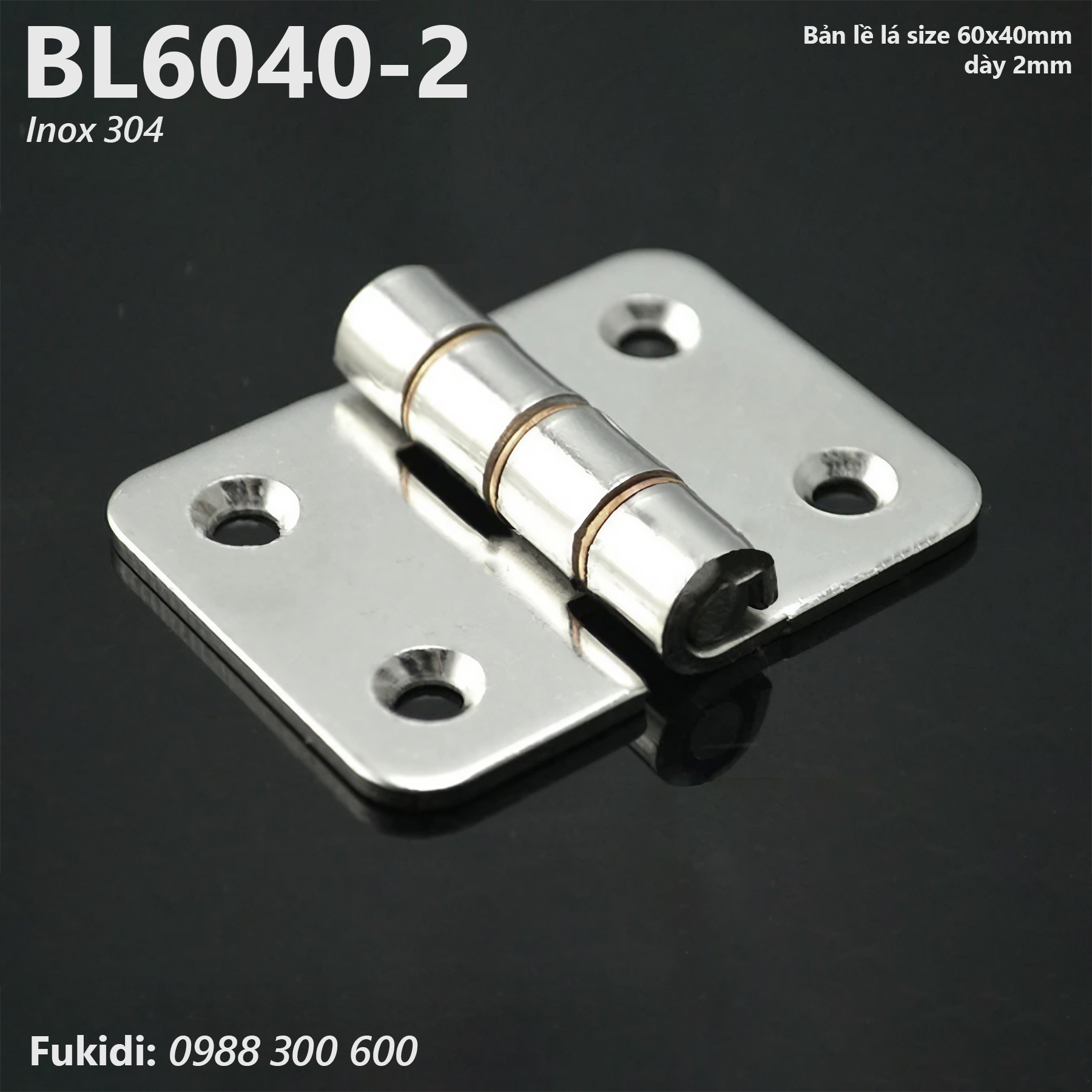 BL6040-2 là bản lề lá, chất liệu inox 304, kích thước 60x40 và dày 2mm, dùng làm bản lề tủ điện, bản lề cho cửa inox, cửa thép, kích thước thông dụng cho nhiều sản phẩm cơ khí công nghiệp và dân dụng.